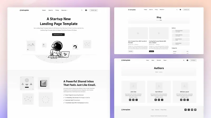 Astroship is a starter template for startups, marketing websites, landing pages & blogs. Free and Pro versions available.