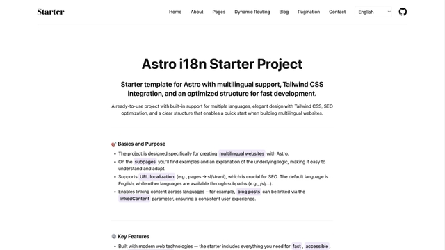 Astro i18n Starter is a complete starter template for multilingual websites built with Astro framework, featuring URL localization and comprehensive internationalization support.