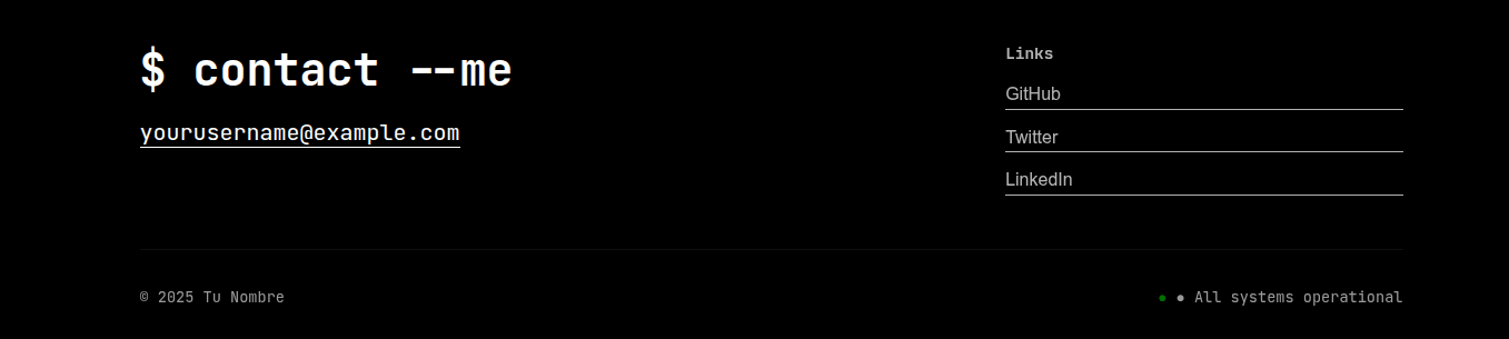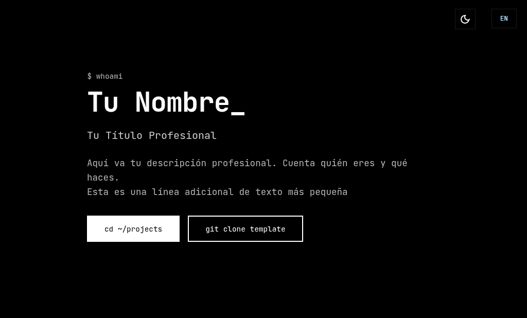 A minimalist tech portfolio template with terminal-inspired design, built for developers and tech professionals who appreciate clean aesthetics and powerful functionality.
