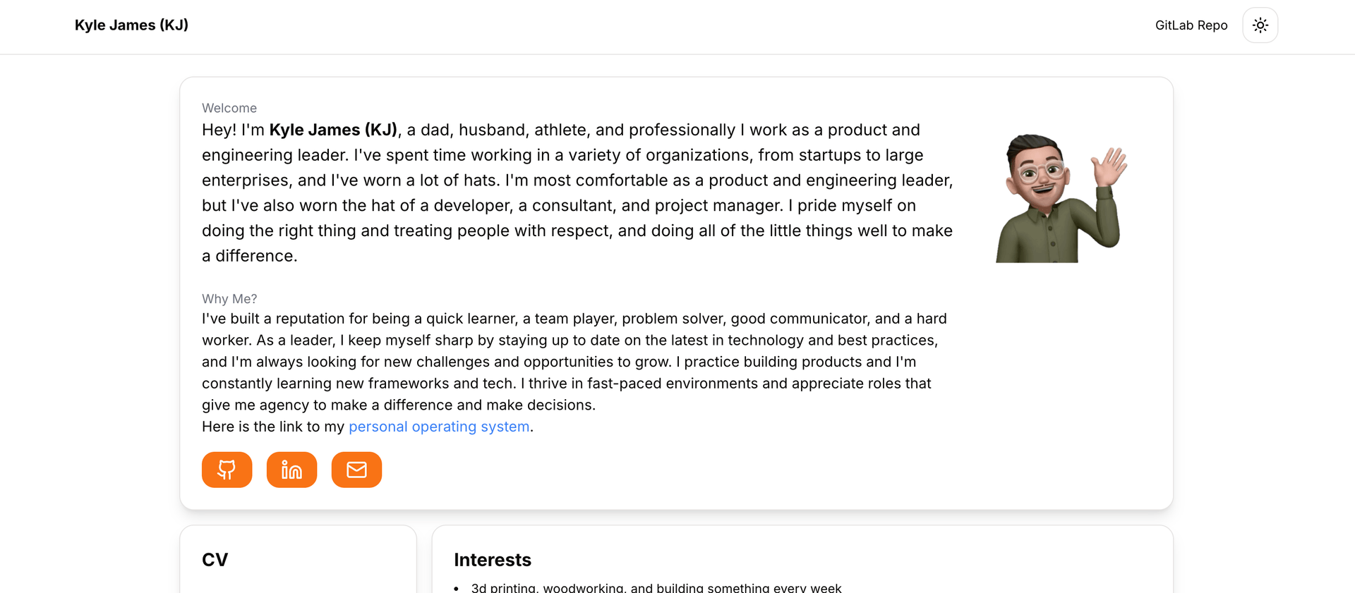 - Interests Card: Personal interests and hobbies